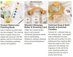 Relaxing Spa Moment Oatmeal soap bar with coconut oil scent, bath salt balls mixed with milk and essential oils, and scented candles with bluebell scent, creating a calm and relaxing rest atmosphere for her. Natural beech wood massage rollers relax every part of her body for her comfort. All this is carefully planned for her to “get well soon”! Also the perfect self care gifts for women