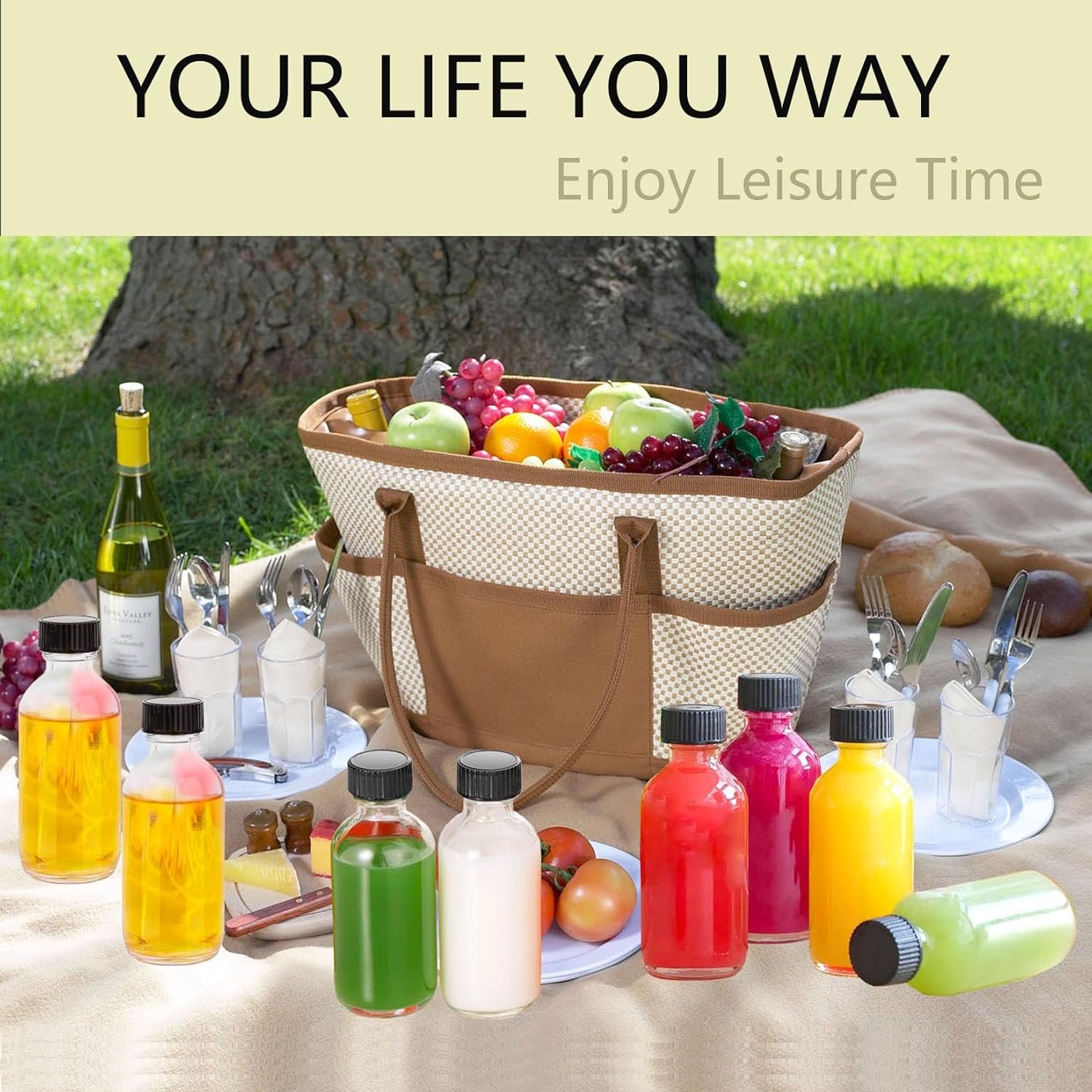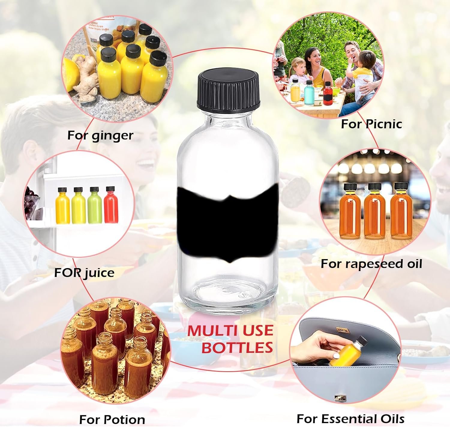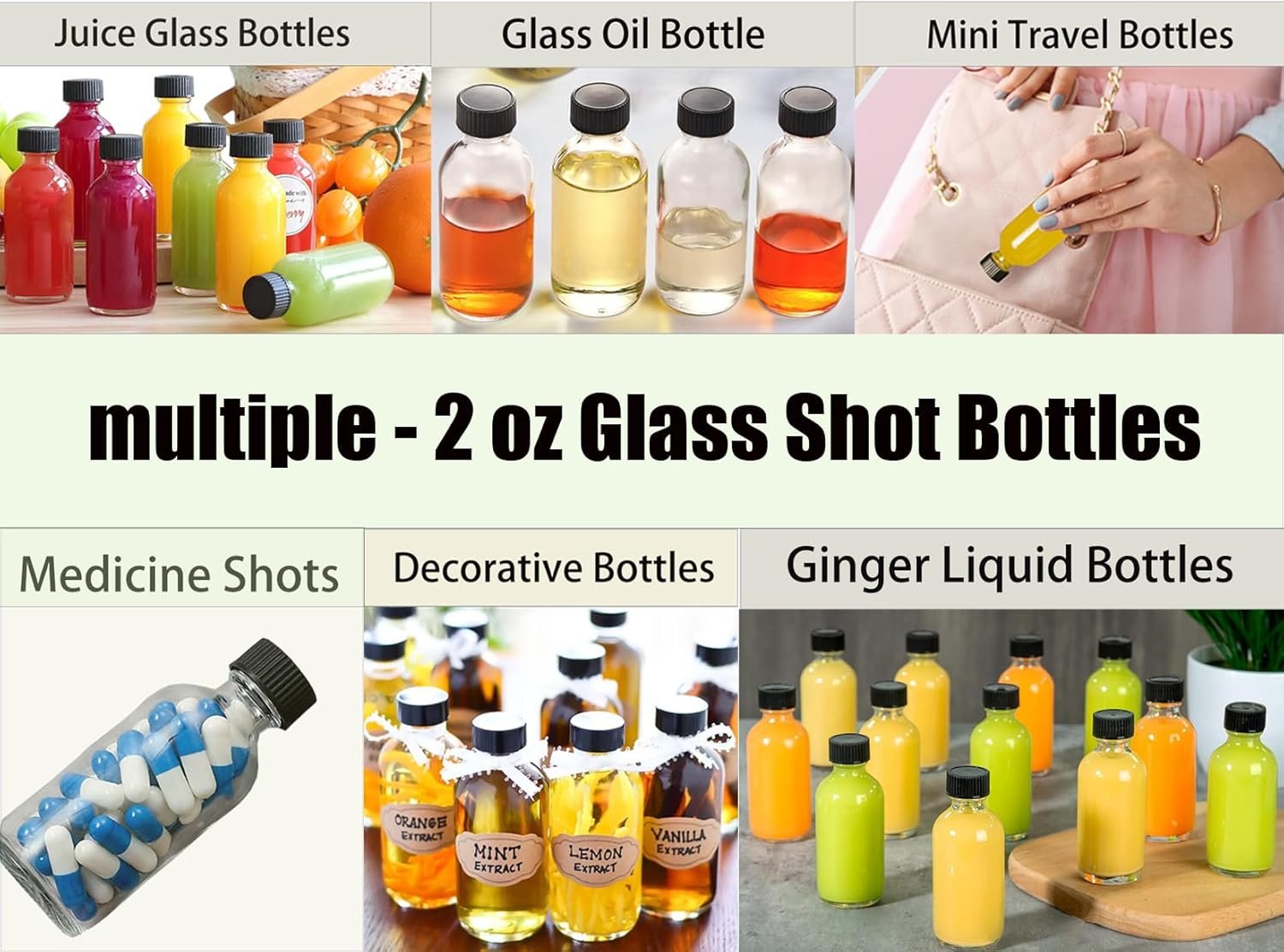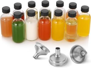 12 Pack- Small Clear Glass Bottles – 60ml with Funnels, Labels, Small Brush