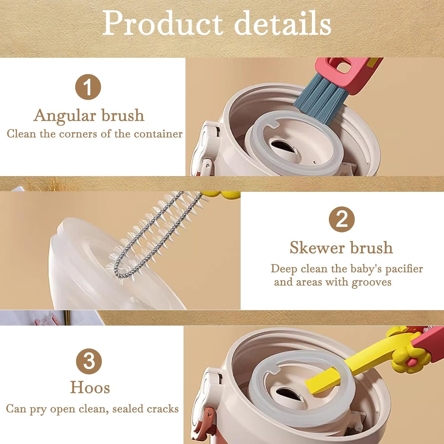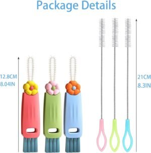 3 in 1 Cleaning Brush Set: this set includes 3Pcs specialized lid brushes. Cup mouth brush for tackling tough, a gap brush for cleaning narrow spaces, and a corner brush with durable bristles for reaching tight corners. Hook-type removal brush heads Not only do they make getting into those hard-to-reach spots a breeze, but they also add a pop of pizzazz with their adorable design. It also includes 3Pcs Straw Cleaner brush