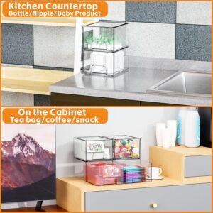 - [Keep Your Home Organized] Our acrylic organizer bins help you to organize your home with style. They are clear, which helps you to identify contents easily. Keep items contained, organized and dust-free and create a neat space in your bathrooms, laundry, bedrooms, offices, garages, toy rooms, craft rooms and playrooms, refrigerator, cupboards or pantry shelves.