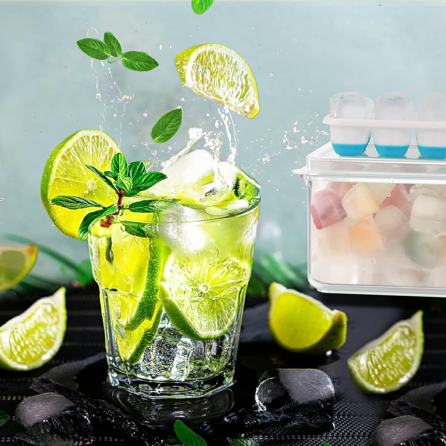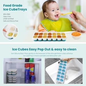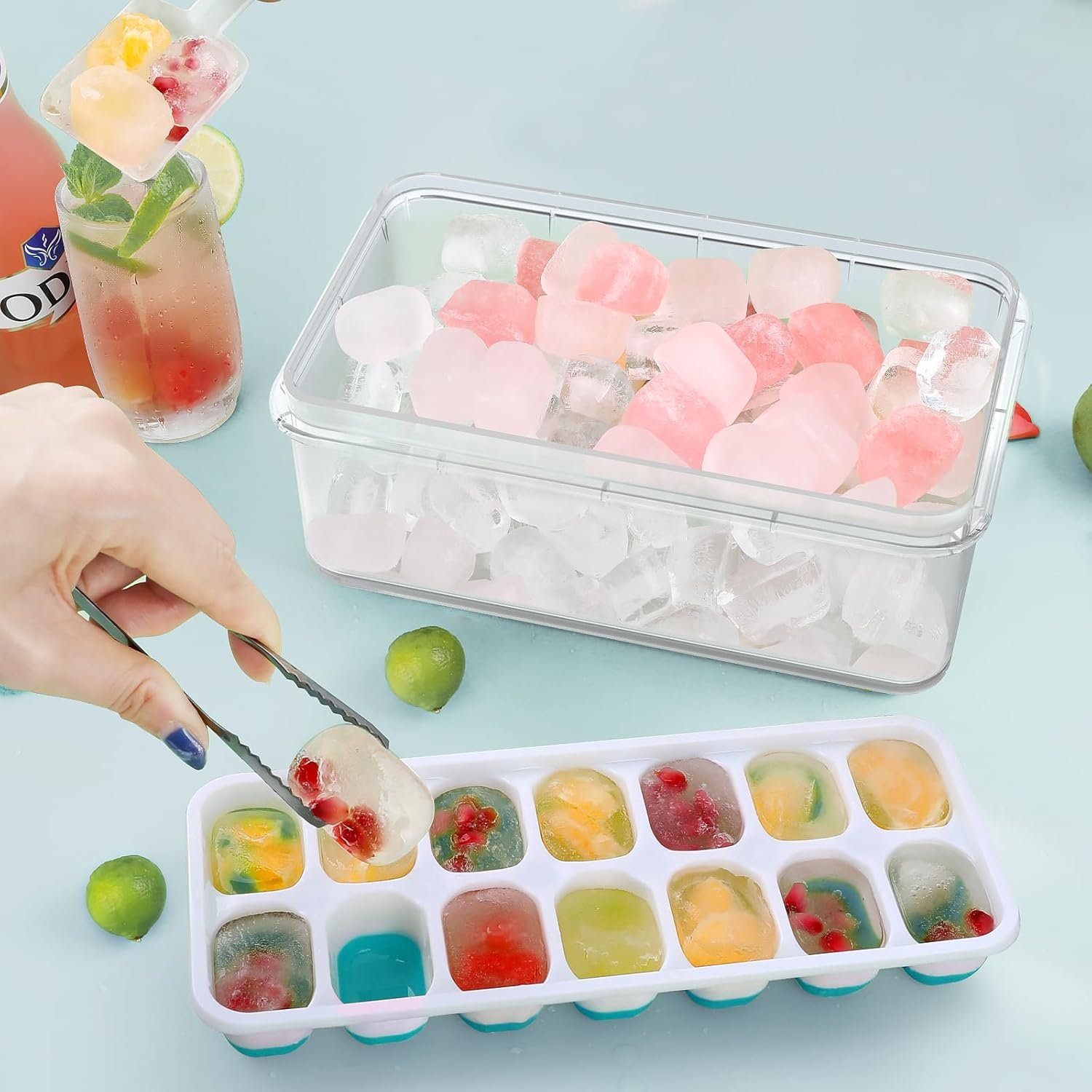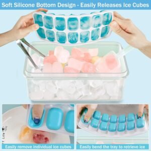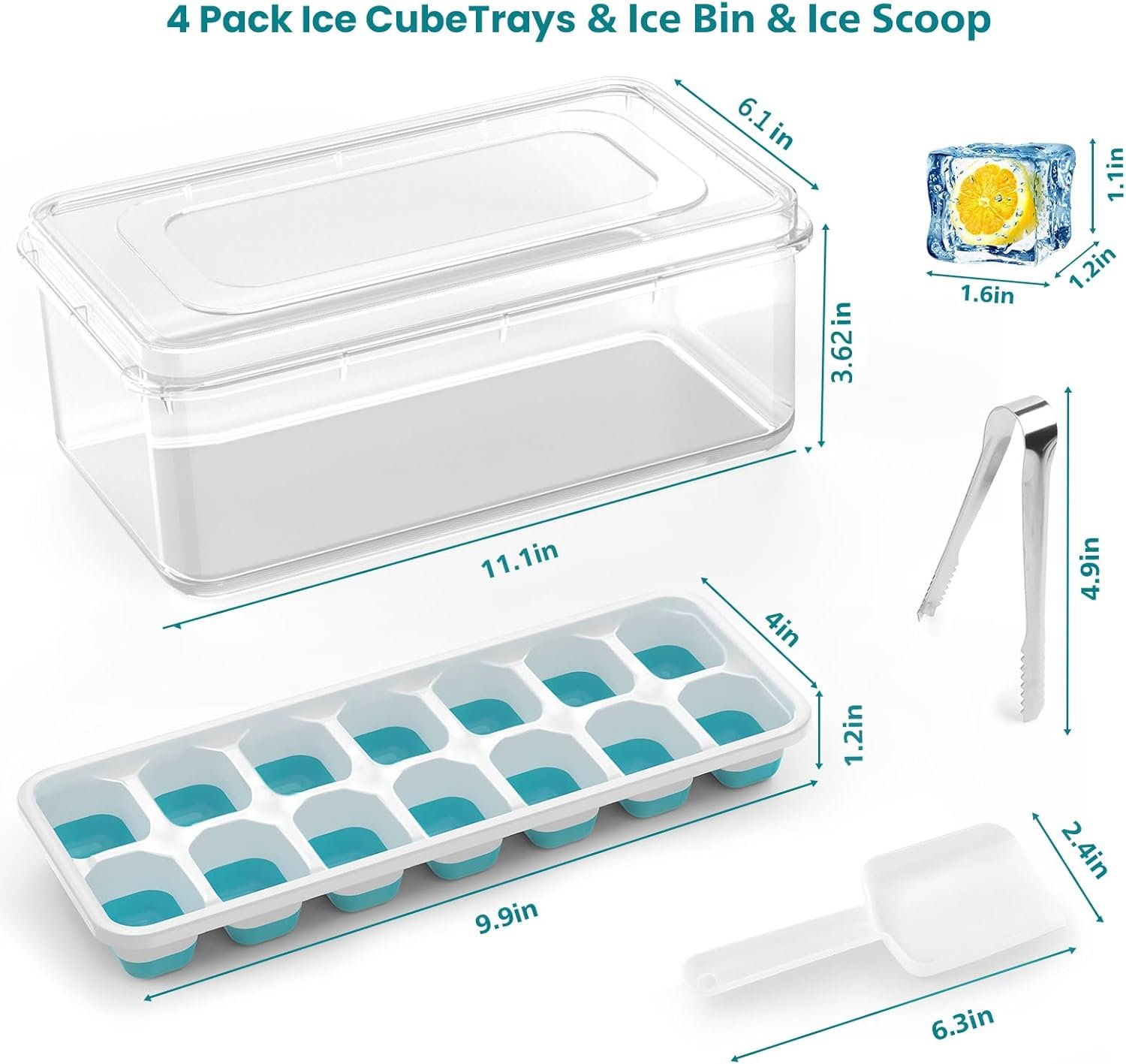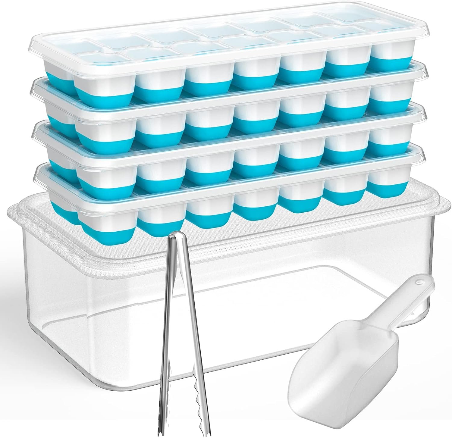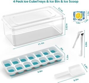 4 Pack Ice Cube Maker Trays Set with Lid and Container, Tong, Scoop Set