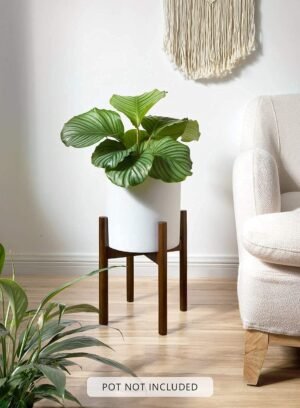 - Awesome Addition to Room Decor The bamboo and wood with simple texture and beautiful color could blend well with your furniture style; Our mid century modern plant stand will improve the decor of your living room dining room bedroom office balcony and more