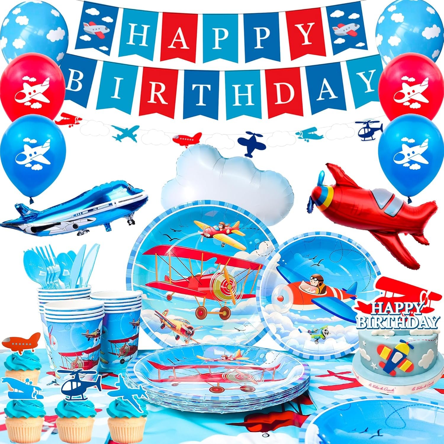 Easy to Enjoy: Airplane birthday party supplies include airplane decorations for party and tableware, complete airplane party decor supplies allow you to have more time to enjoy the airplane birthday party.