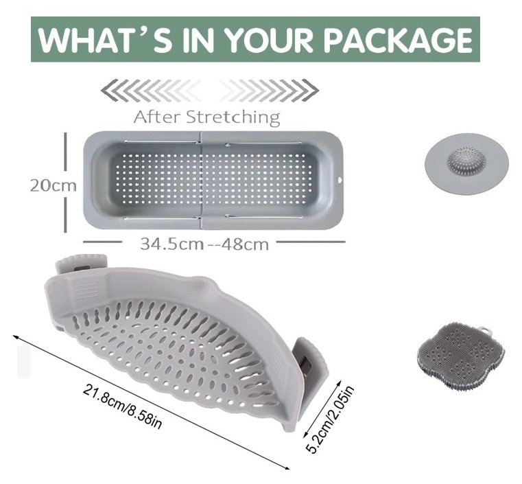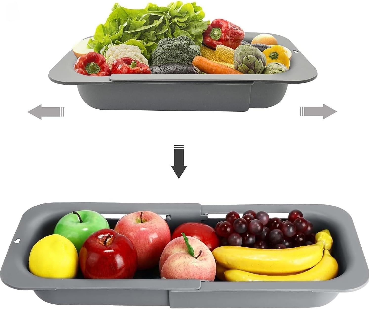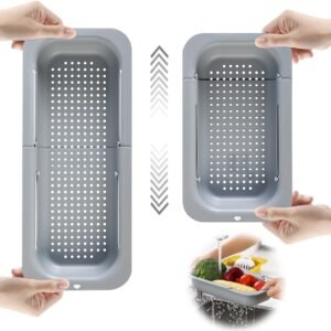 Stronger Colander- Sink colander for kitchen sink made of thicker plastic and upgraded stronger that stays stable during use, doesn’t fall into the sink. Collapsible colander slides apart 14.5″ to 19.5″ to fit any sink.