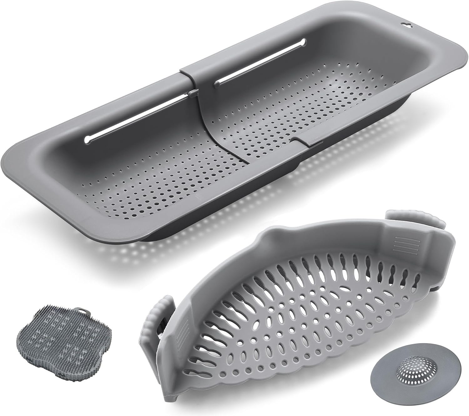 Easy to clean and Store- Colander and pot strainer clip on silicone dishwasher safe. It really makes the kitchen job a lot easier. Small & compact pot strainer saves space, sink colander, hang them up when not in use.