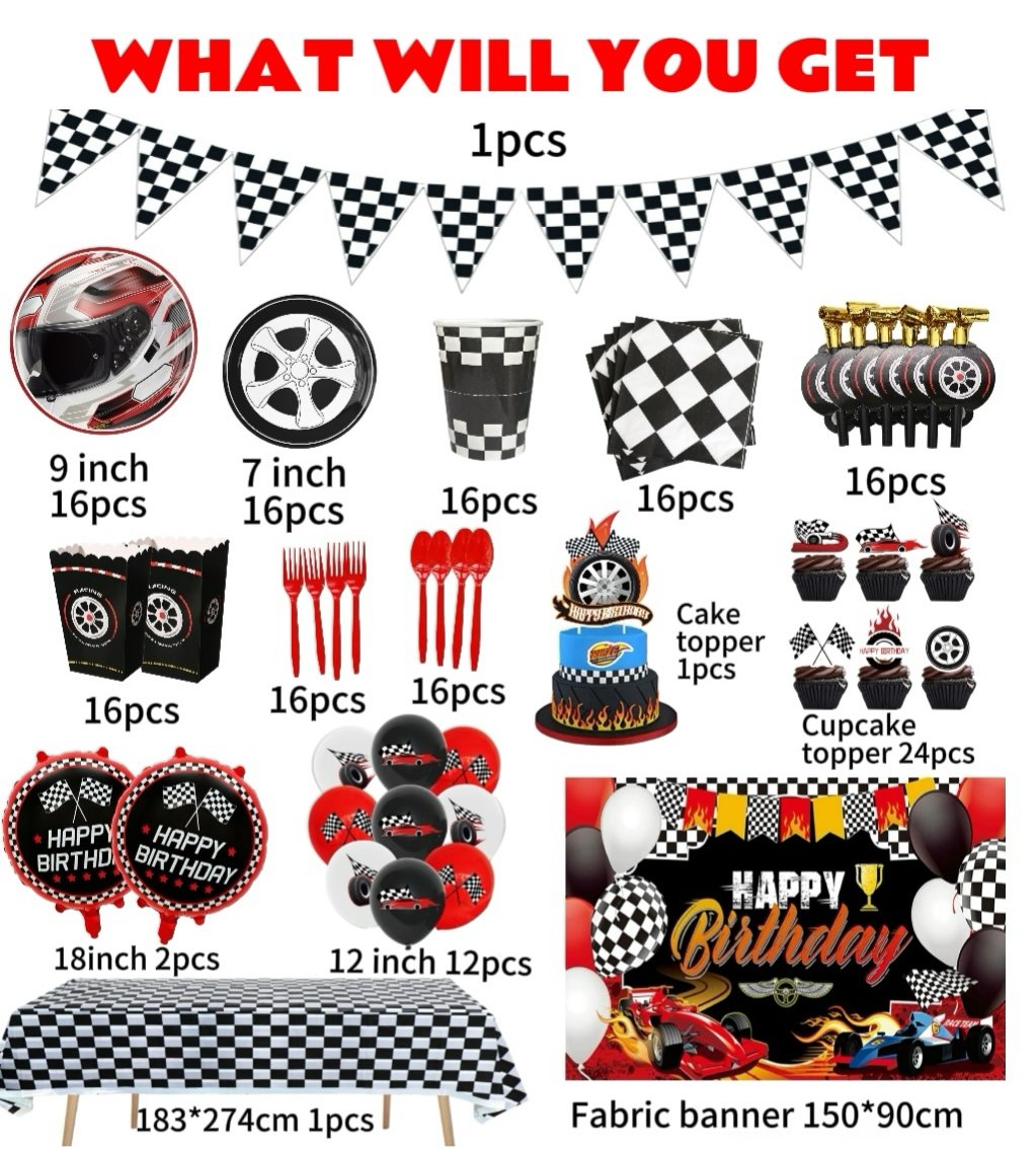 Race Car Birthday Party Supplies and Decorations – Pack of 170 Pieces