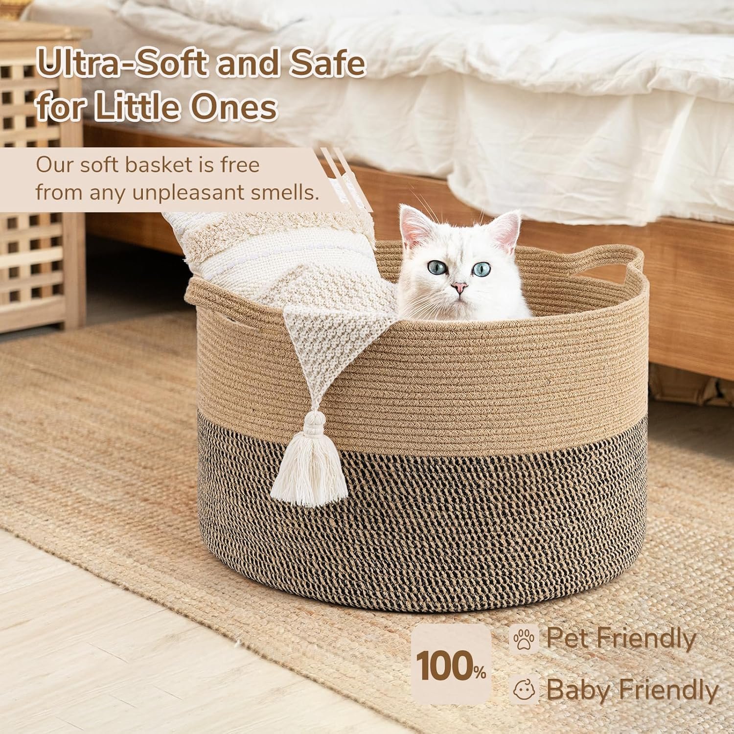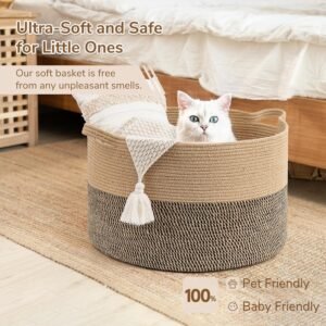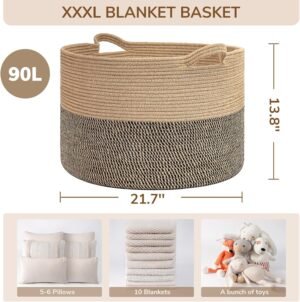 - Soft Basket. This big basket is made of sturdy cotton&jute rope and designed for long-lasting use. Different from a rattan blanket basket, this basket will not scratch your hands, clothes, and floors